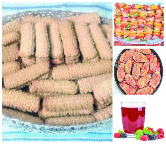 الإفطار:شيش طاووق وقوارب الباذنجان باللحم والحلو:بسكويت جوز الهند