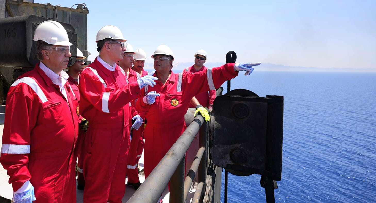 جولة بحرية لوزير البترول لمنصة تسهيلات إنتاج حقل شمال صفا البحرى