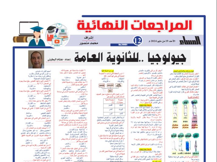 المراجعة النهائية في الجولوجيا للثانوية العامة 2024