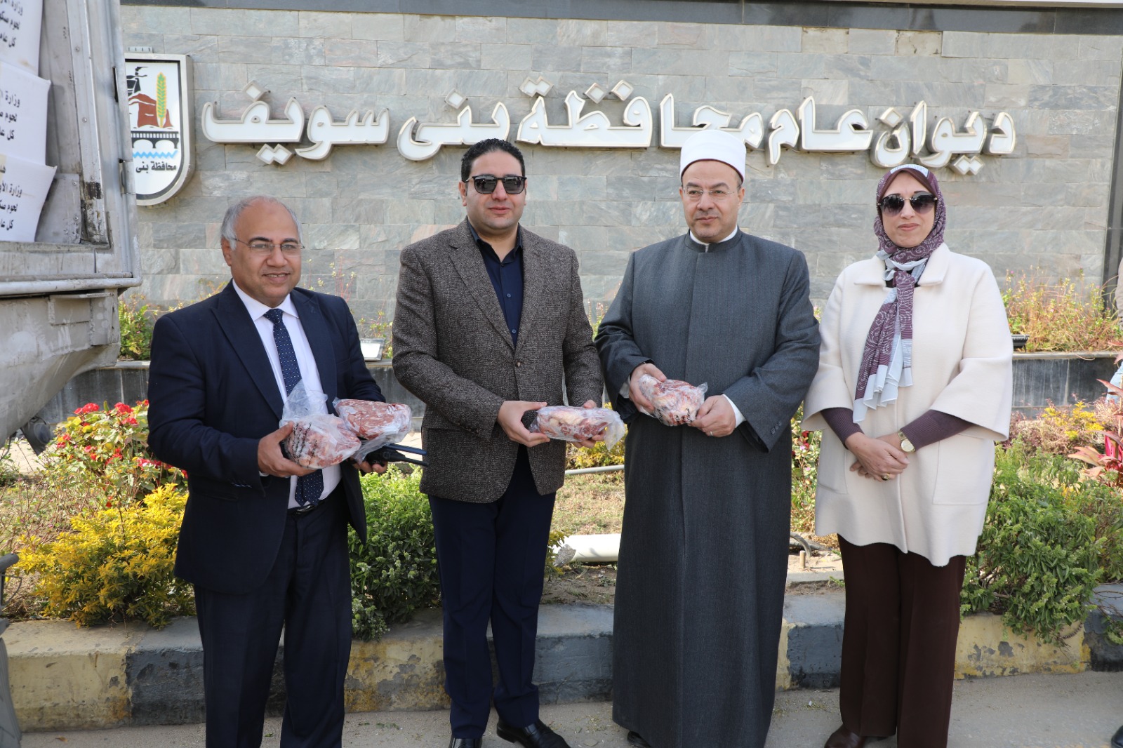 حبش يشرف على استلام 2.5طن لحوم أضاحى ببنى سويف