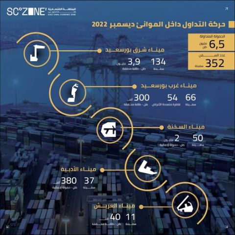 إنفوجراف..حركة تداول السفن بموانئ المنطقة الإقتصادية خلال ديسمبر