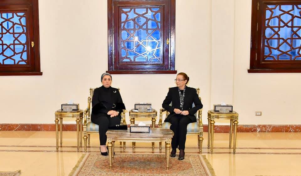 قرينة الرئيس تقدم واجب العزاء لأسرة الرئيس الأسبق حسني مبارك