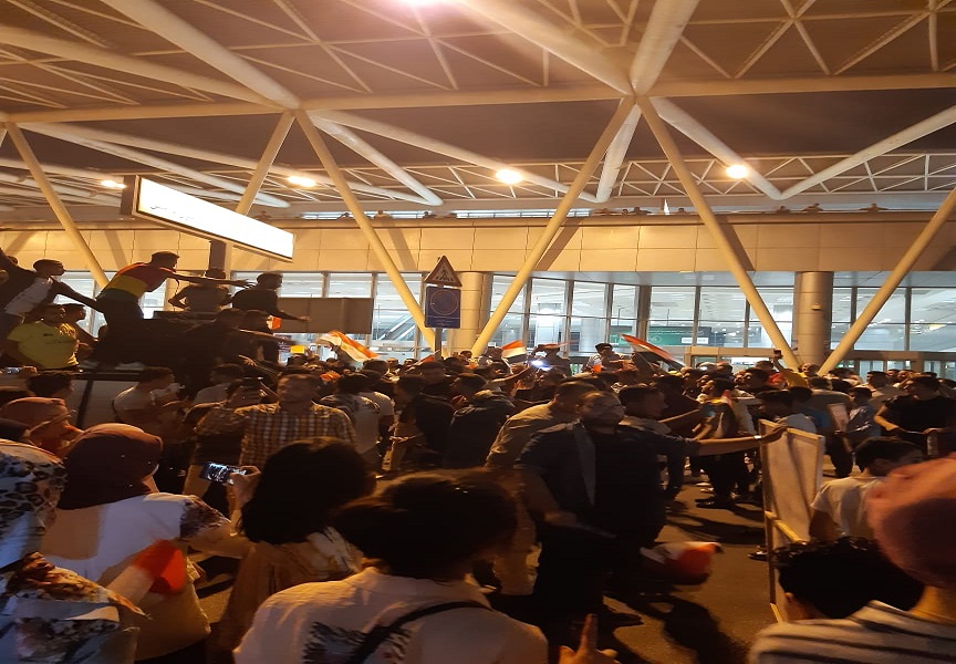 حشد جماهيري في استقبال بعثة منتخب اليد بالمطار .. فيديو وصور