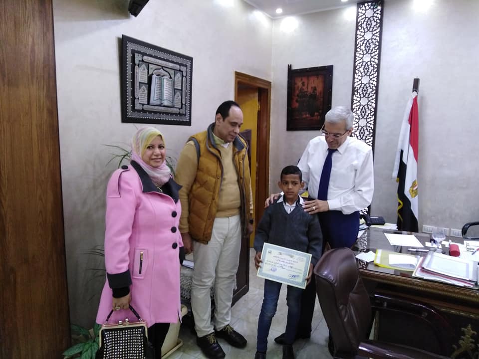 تعليم القليوبية تكرم الطالب سلامة امين بالابتدائية لحفظه القرآن الكريم