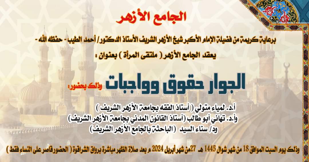 حق الجار.. ملتقى المرأة بالجامع الأزهر السبت المقبل