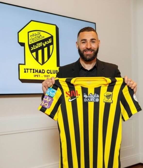 بنزيما يرتدي قميص عبد الرزاق حمدالله في اتحاد جدة