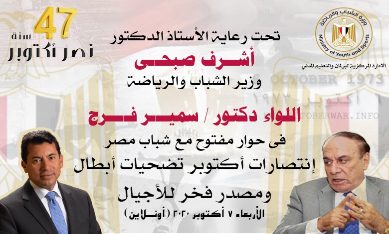 اللواء سمير فرج في حوار مفتوح مع الشباب بمناسبة ذكرى انتصارات أكتوبر..غدا