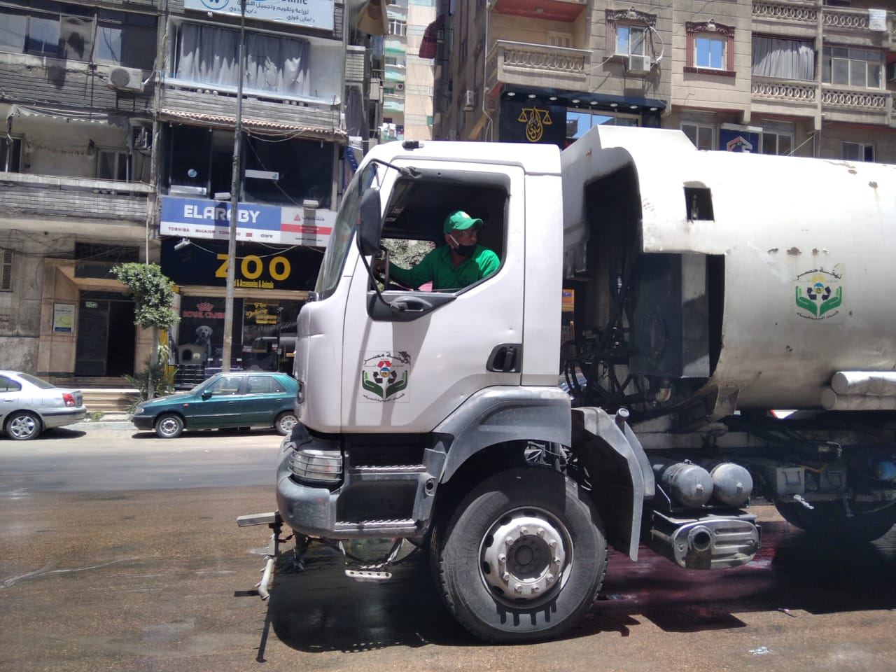 ٣ سيارات فنطاس لرش المطهرات لتعقيم شوارع حى المنتزه بالإسكندرية بالصور