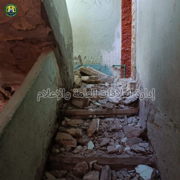 معاينة منزل بحي السلام في الإسماعيلية بعد سقوط سلم الدور الثالث