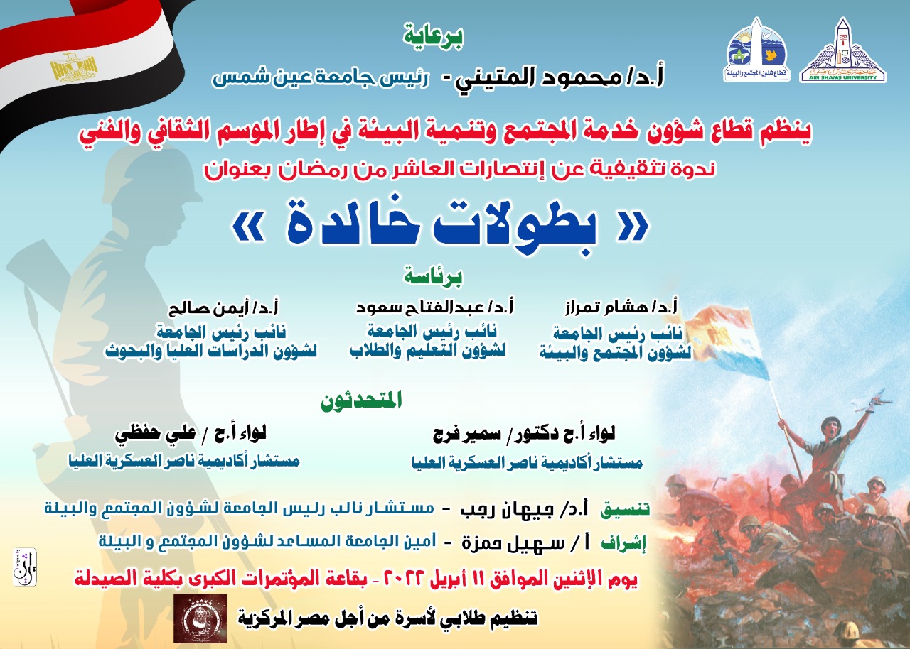 جامعة عين شمس تحتفل بانتصارات العاشر من رمضان بندوة "بطولات خالدة"