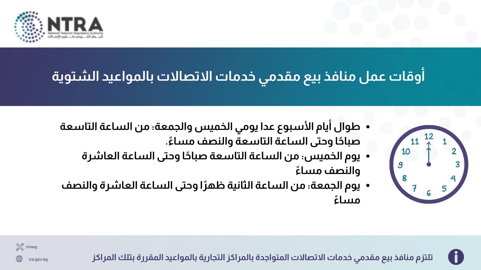 أوقات عمل منافذ بيع مقدمي خدمات الاتصالات بالمواعيد الشتوية