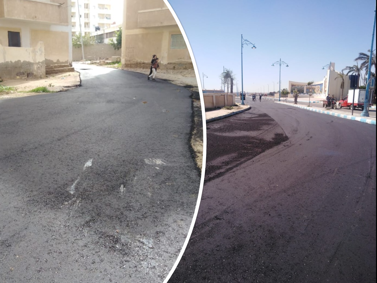الانتهاء من رصف منطقة عمارات الروضة وطريق الخروبة بمرسي مطروح