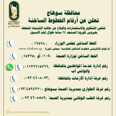سوهاج تخصص 4 خطوط ساخنة لتلقي شكاوي كورونا