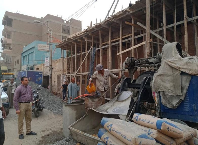 إيقاف بناء مخالف والتحفظ على الخلاطة في مدينة طهطا بسوهاج..صور