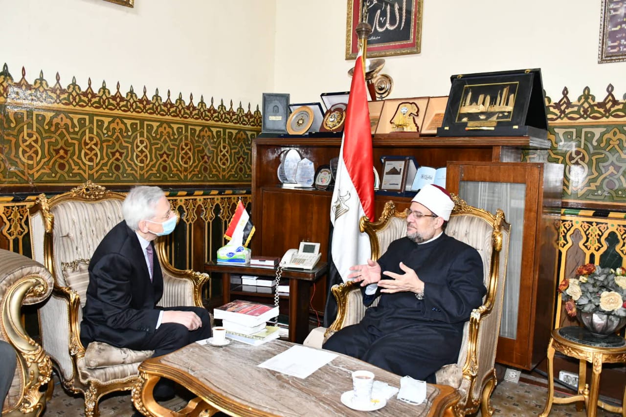 وزير الأوقاف خلال لقائه سفير فرنسا بالقاهرة نرفع راية الإنسانية عالية