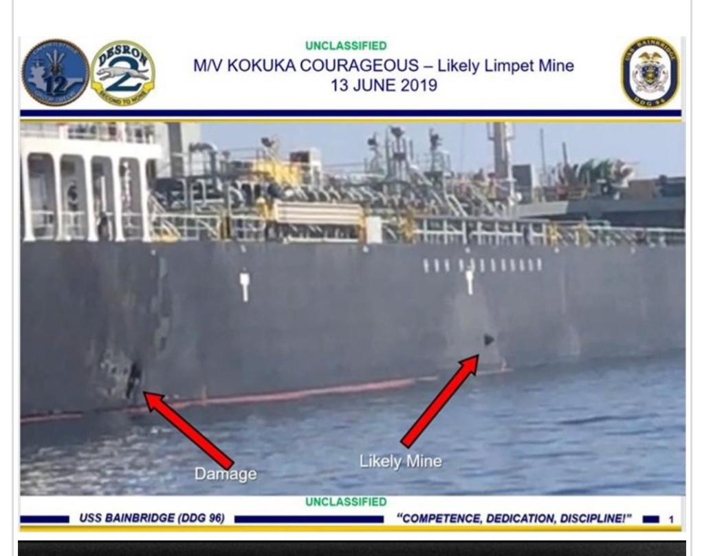 امريكا تنشر صورا جديدة تثبت تورط ايران في الهجوم على ناقلتي نفط بخليج عمان