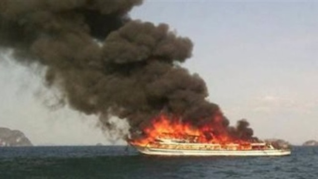 شاهد ... لحظة إصابة البارجة الإيرانية بنيران صديقة فى خليج عمان