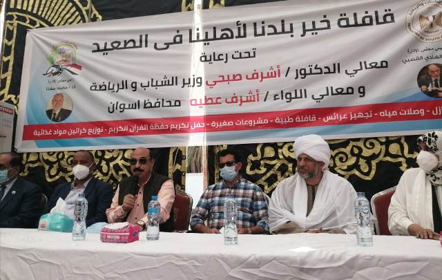 وزير الشباب ومحافظ أسوان يدشنان قافلة خير بلدنا بمركز شباب دراو