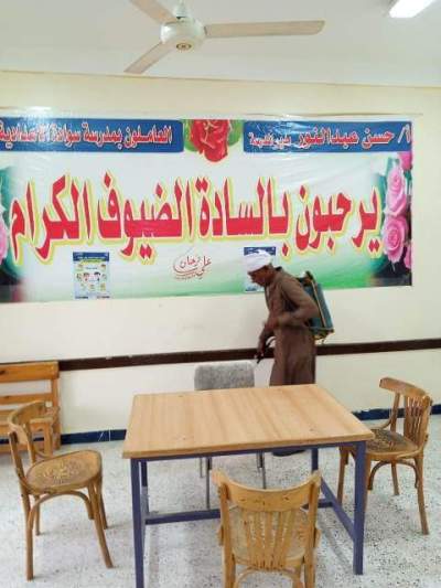 استمرار اعمال النظافة والتعقيم بداخل اللجان والمناطق المحيطة للحفاظ على بيئة صحية ونظيفة