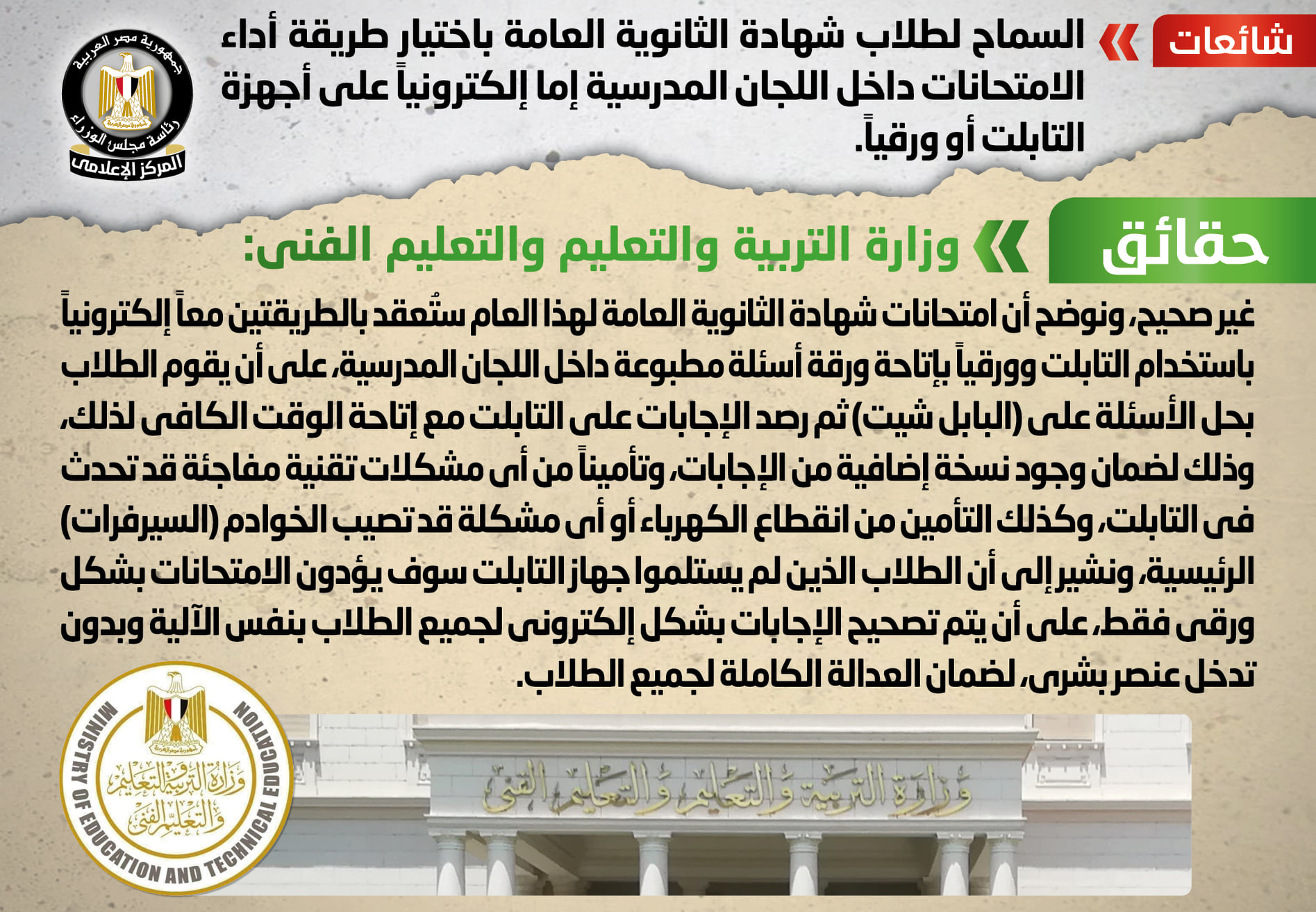 الوزراء ينفى السماح لطلاب الثانوية باختيار طريقة أداء الامتحانات داخل اللجان