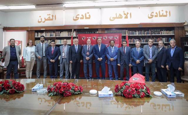 الخطيب يهدى درع وعلم الأهلى لوفد الاتحاد الدولي للكاراتيه