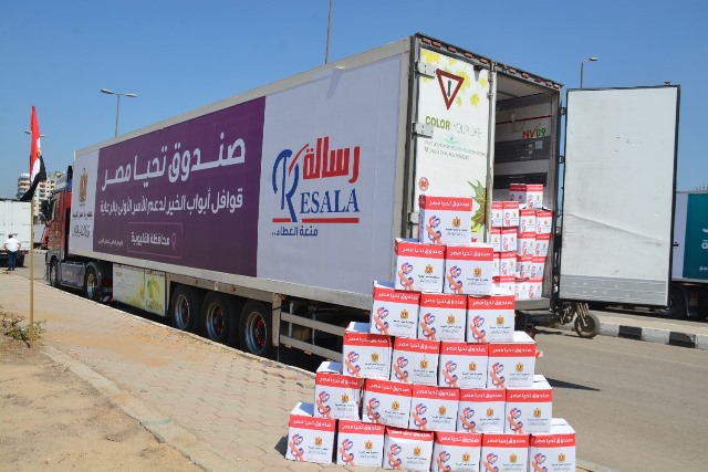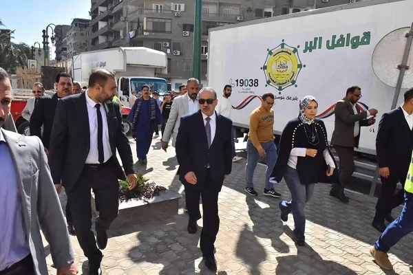 محافظ الدقهلية يتابع توزيع قافلة الخير لصندوق تحيا مصر لدعم الأسر الأولي بالرعاية وتجهيز العرائس