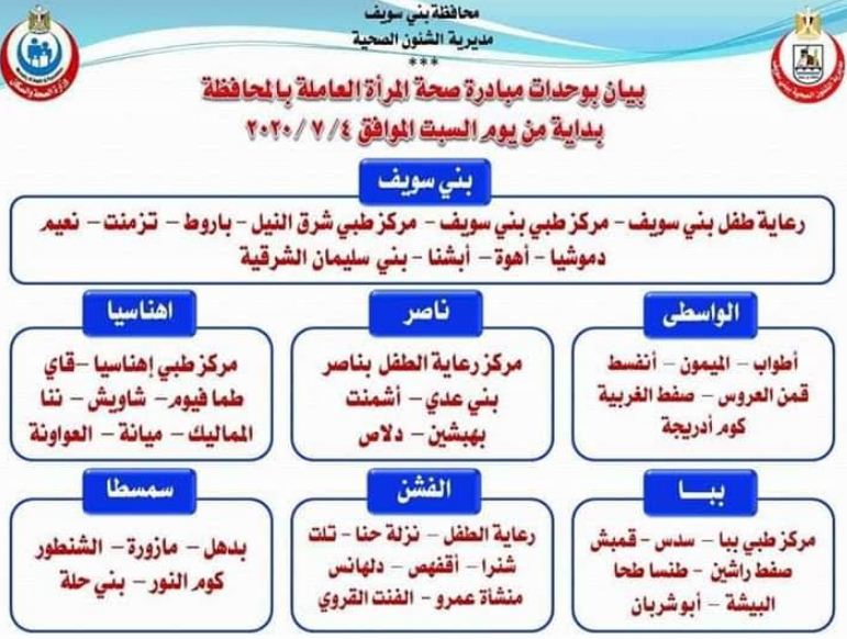 استئناف العمل بالمبادرة الرئاسية لدعم صحة المرأة في 49 موقع ببنى سويف..غدا
