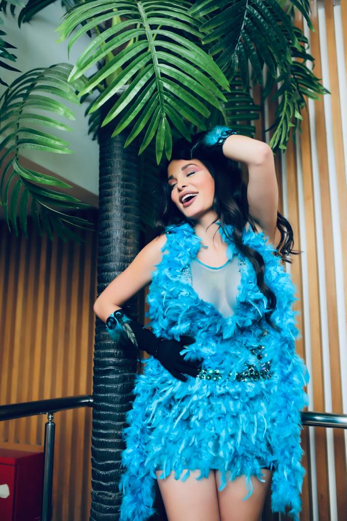 شاهد.. دومينيك حوراني بـ"ريش نعام" فى حفلها بالقاهرة