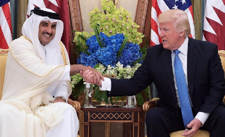 أمير قطر يستقبل الرئيس الأمريكي في الديوان الأميري