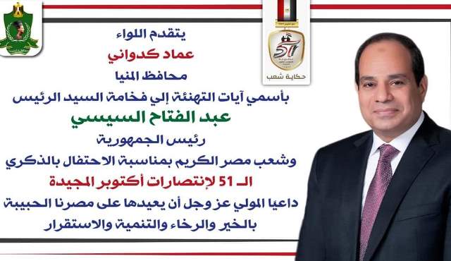 محافظ المنيا يهنئ السيسي بذكرى انتصارات أكتوبر