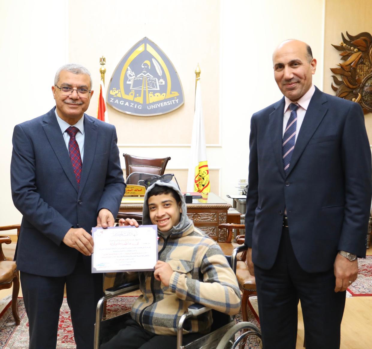 رئيس جامعةالزقازيق يُكَرِّمُ الطلاب الفائزين في فعاليات ذوى الهمم