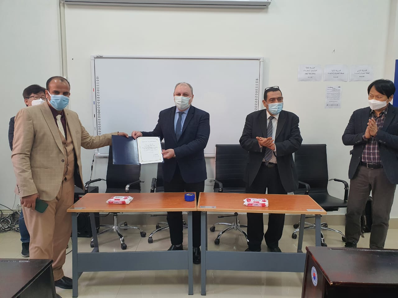 رئيس جامعة بني سويف التكنولوجية يكرم خبراء كوريين