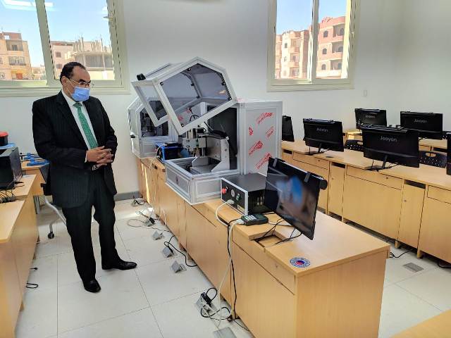 رئيس جامعة بني سويف التكنولوجية يتفقد المعامل الجديدة