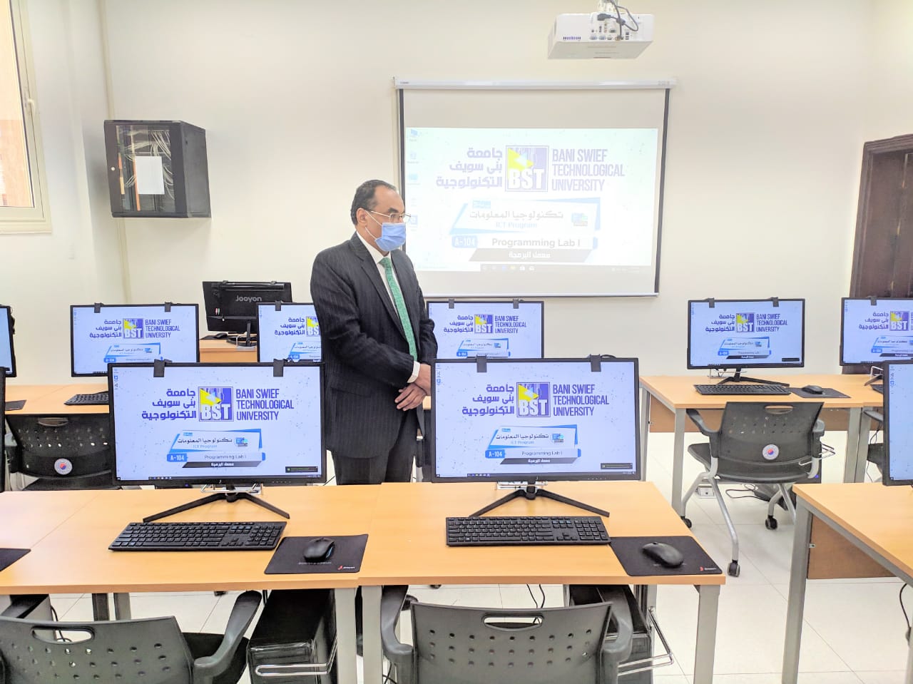 رئيس جامعة بني سويف التكنولوجية يتفقد معامل البرمجيات
