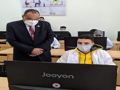 رئيس جامعة بني سويف التكنولوجية يتفقد سير الامتحانات برفقة وفد كورى
