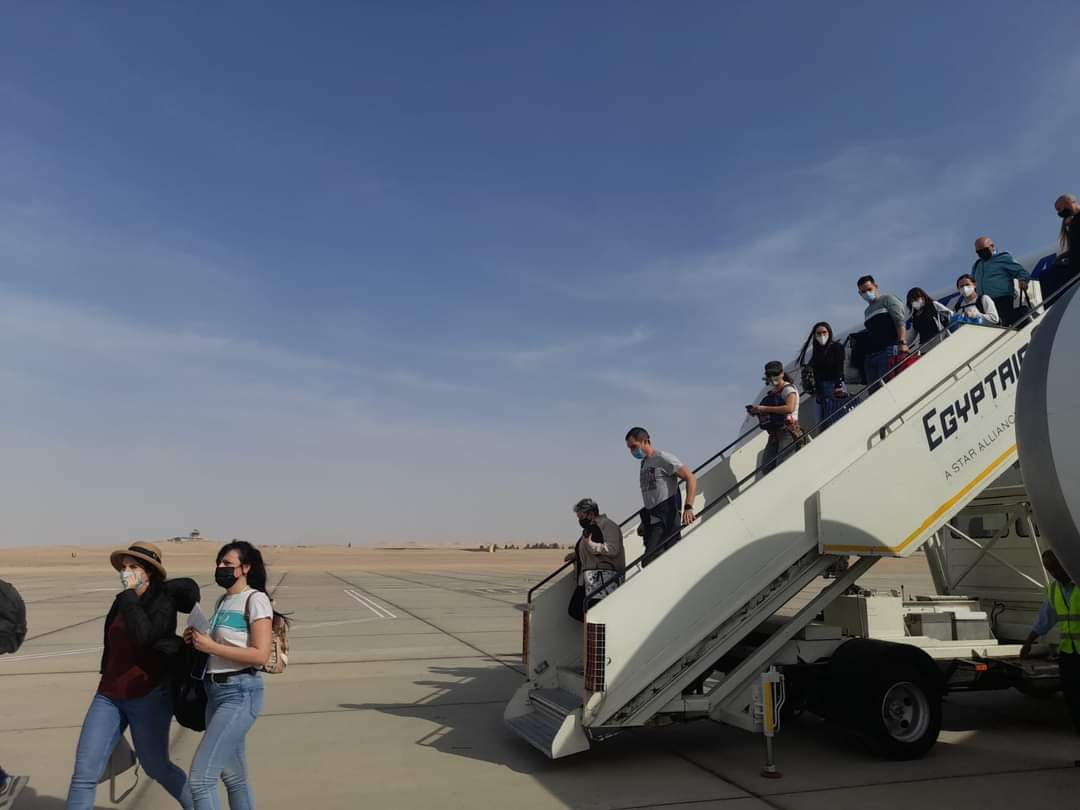 وصول أولي رحلات مصر للطيران إلي مطار الخارجة بالوادي الجديد