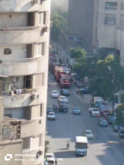 وصول سيارات الاطفاء لأخماد حريق سنترال رمسيس