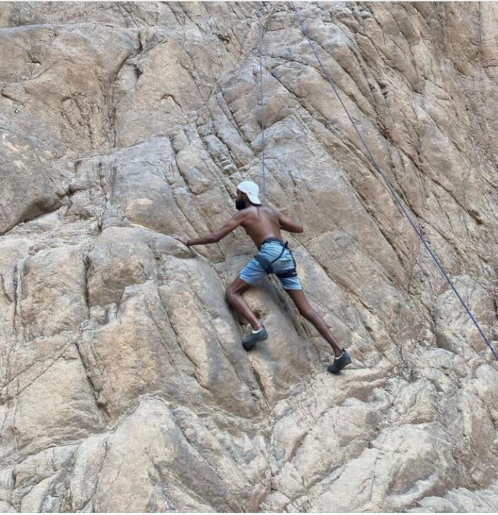 شاهد.. محمود الليثي يتسلق أحد الجبال ويعلق: "سحلية"