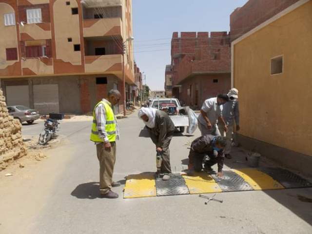 للحد من السرعات.. تركيب مطبات صناعية بطرق الوادى الجديد.. صور