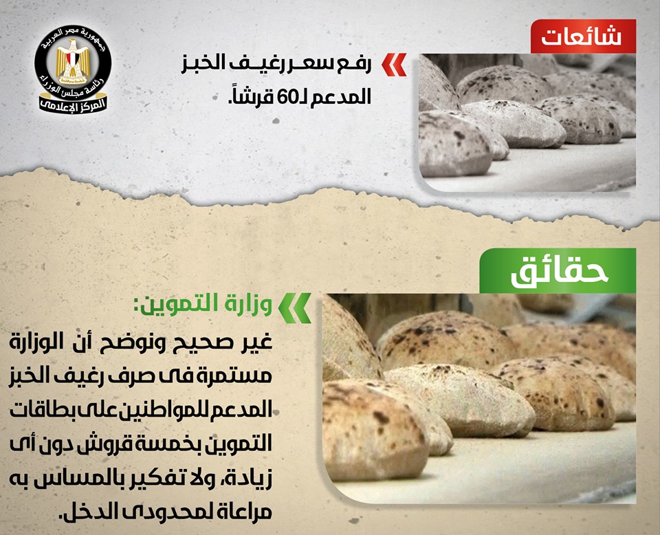 حقيقة رفع سعر رغيف الخبز المدعم بنسبة 30%