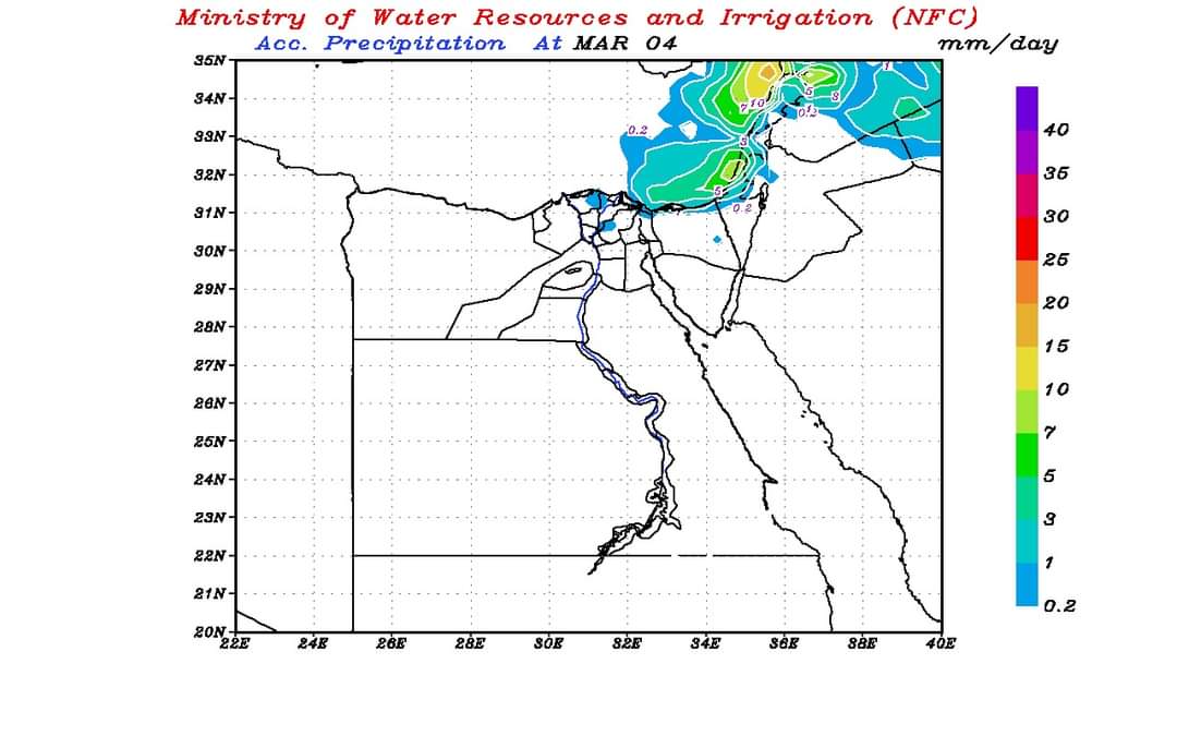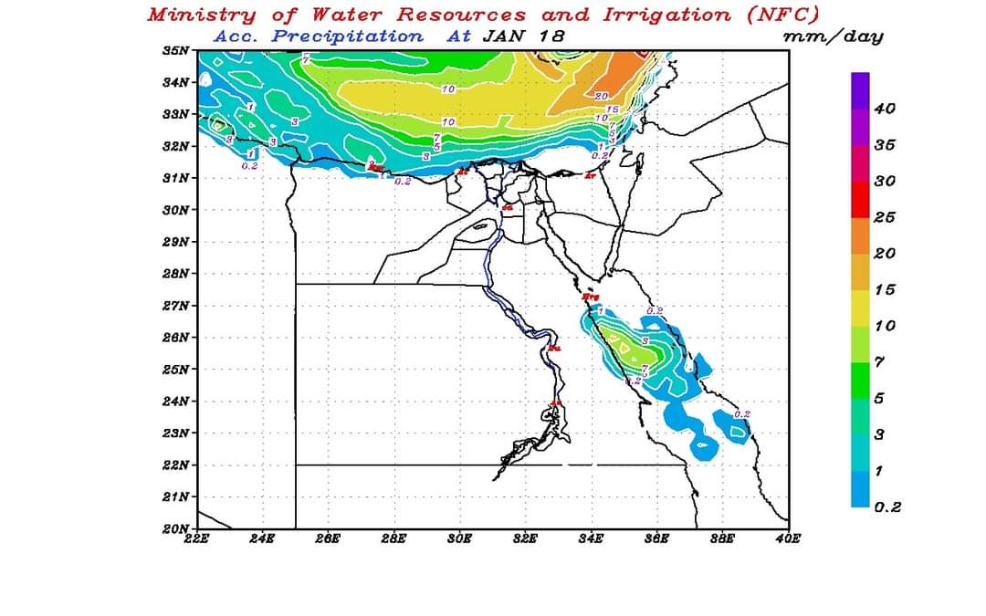 الارصاد : استمرار سقوط الامطار على سيناء والبحر الاحمر