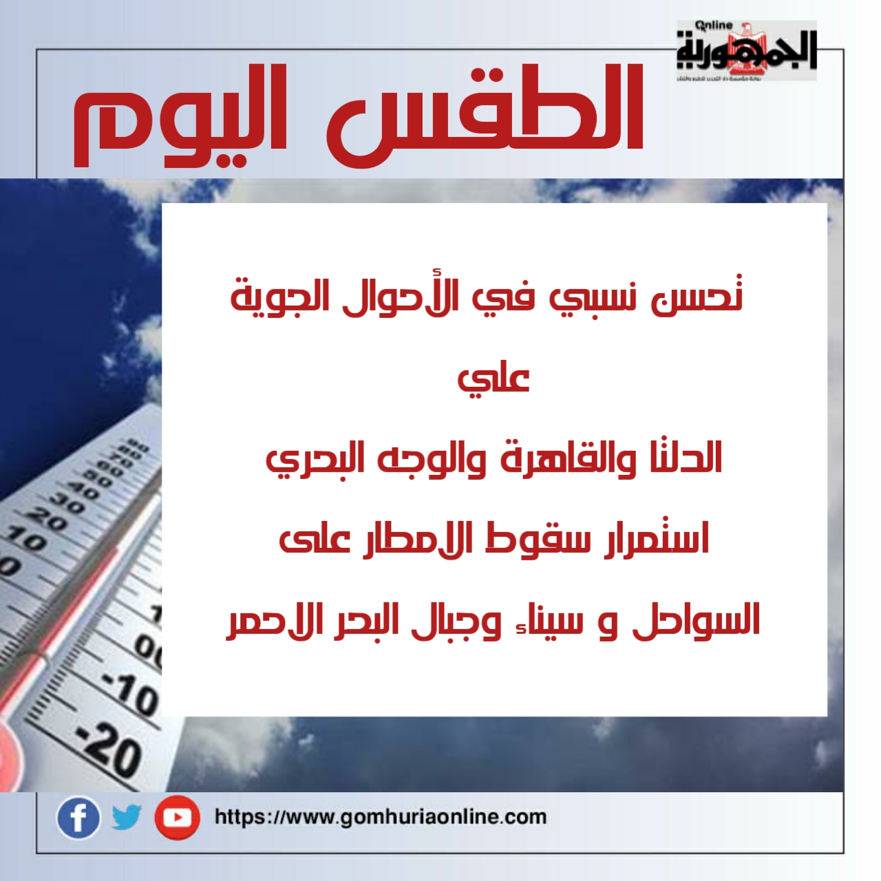 اجواء باردة حتي نهاية الأسبوع.. الارصاد تحدد أماكن سقوط الامطار غدا