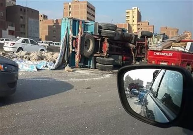 إصابة 3 إثر سقوط حمولة زلط لسيارة نقل فى البساتين
