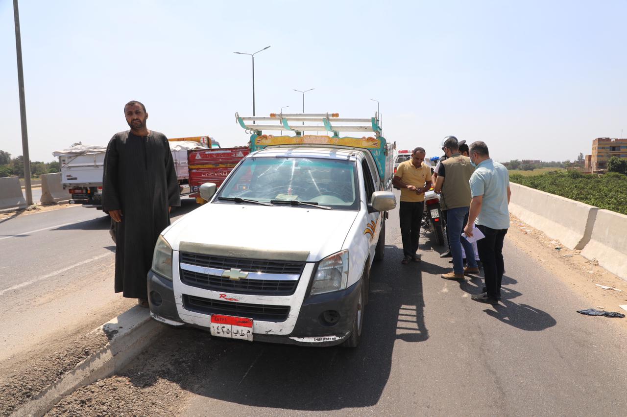 الهجان يضبط سيارة تسير عكس الاتجاه خلال جولاته بـ ٣ مدن بالقليوبية