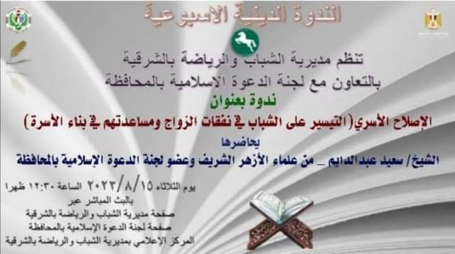 الإصلاح الأسري أون لاين بشباب ورياضة الشرقية