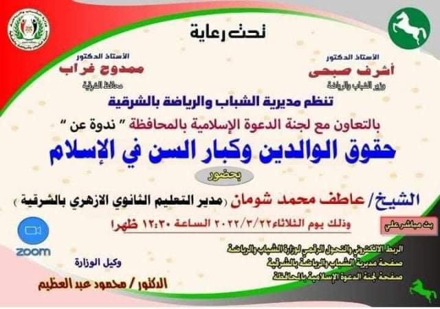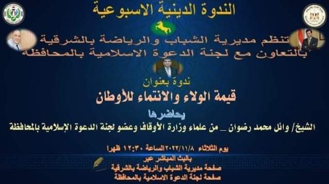 الإسلام دين السماحة والمحبة ندوة أون لاين بشباب ورياضة الشرقية