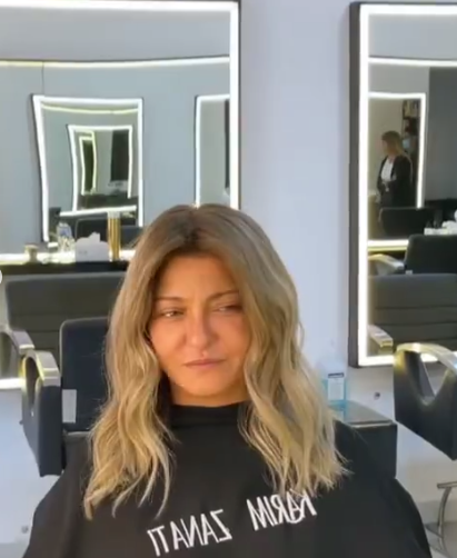 أمينة خليل تقص شعرها داخل إحدى صالونات التجميل