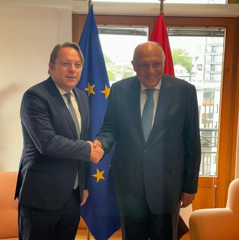 شكري يبحث مع المفوض الأوروبي للجوار مستجدات الحرب في غزة