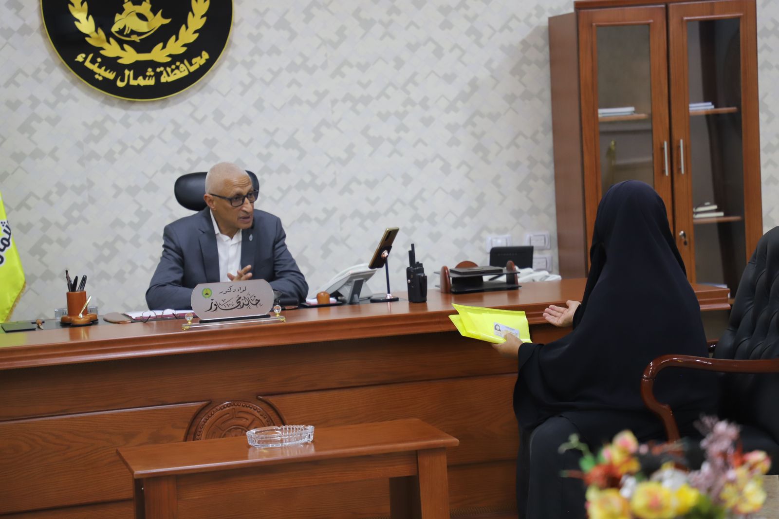 محافظ شمال سيناء يستقبل سيدة من منطقة البرث