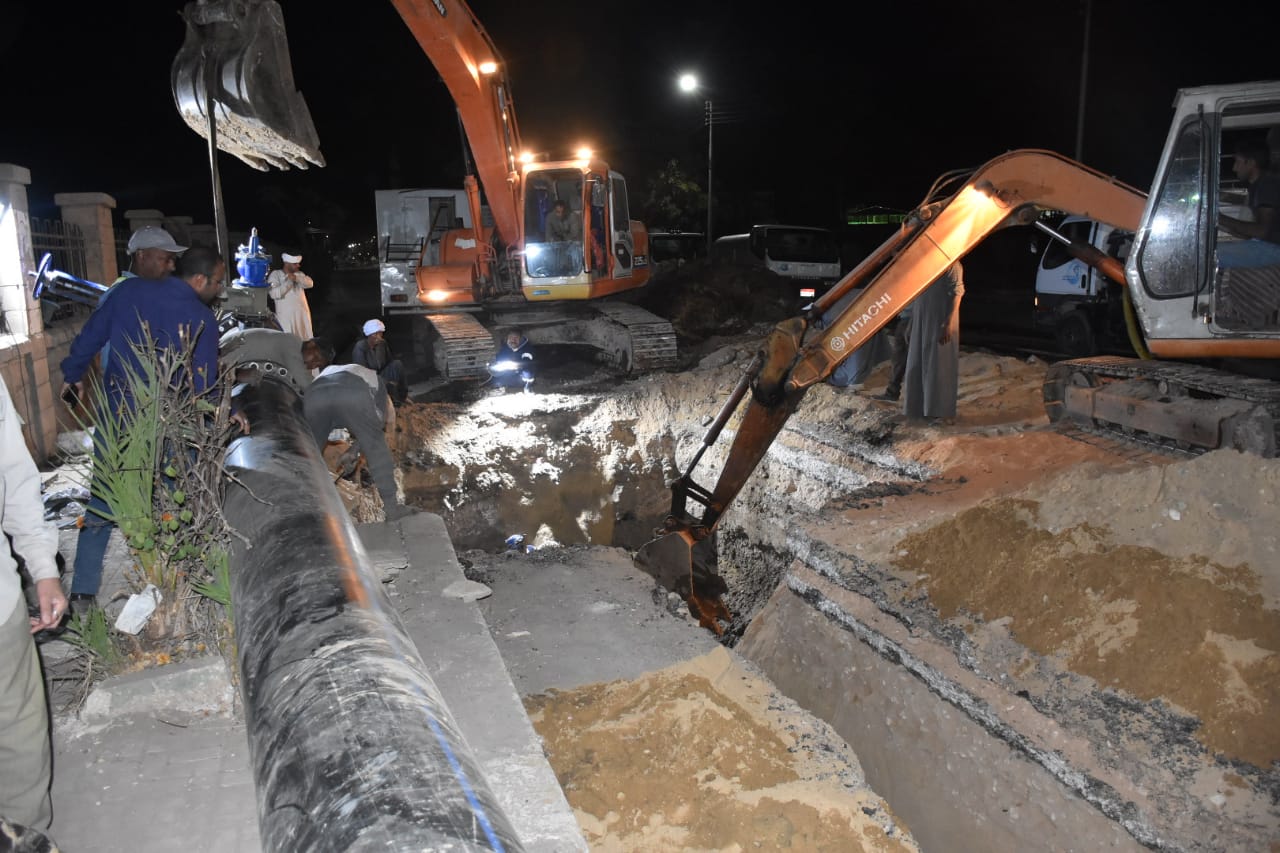 كسر بخط صرف صحى 1000مم التابع لمحطة 3 بالحبيل شرق الأقصر